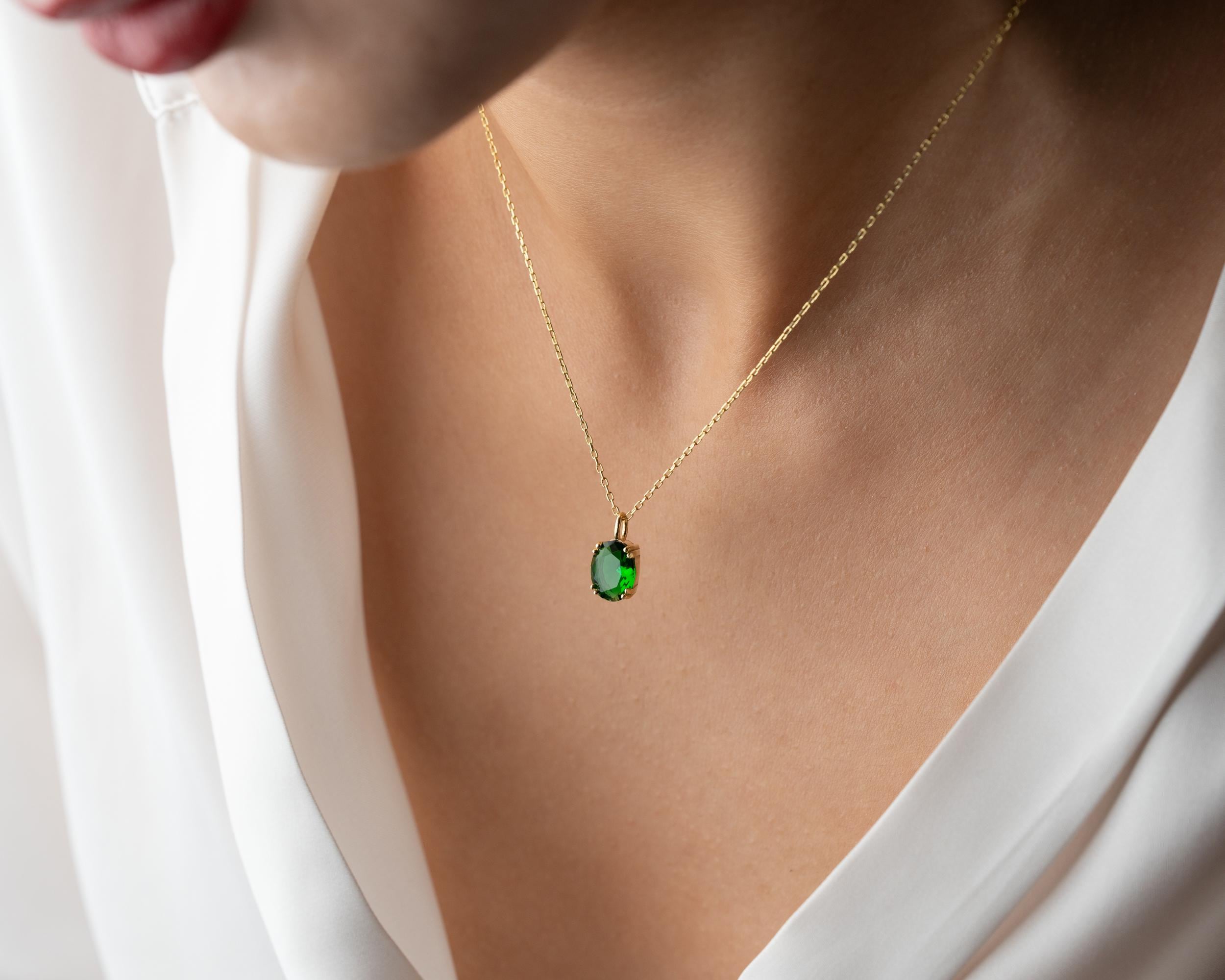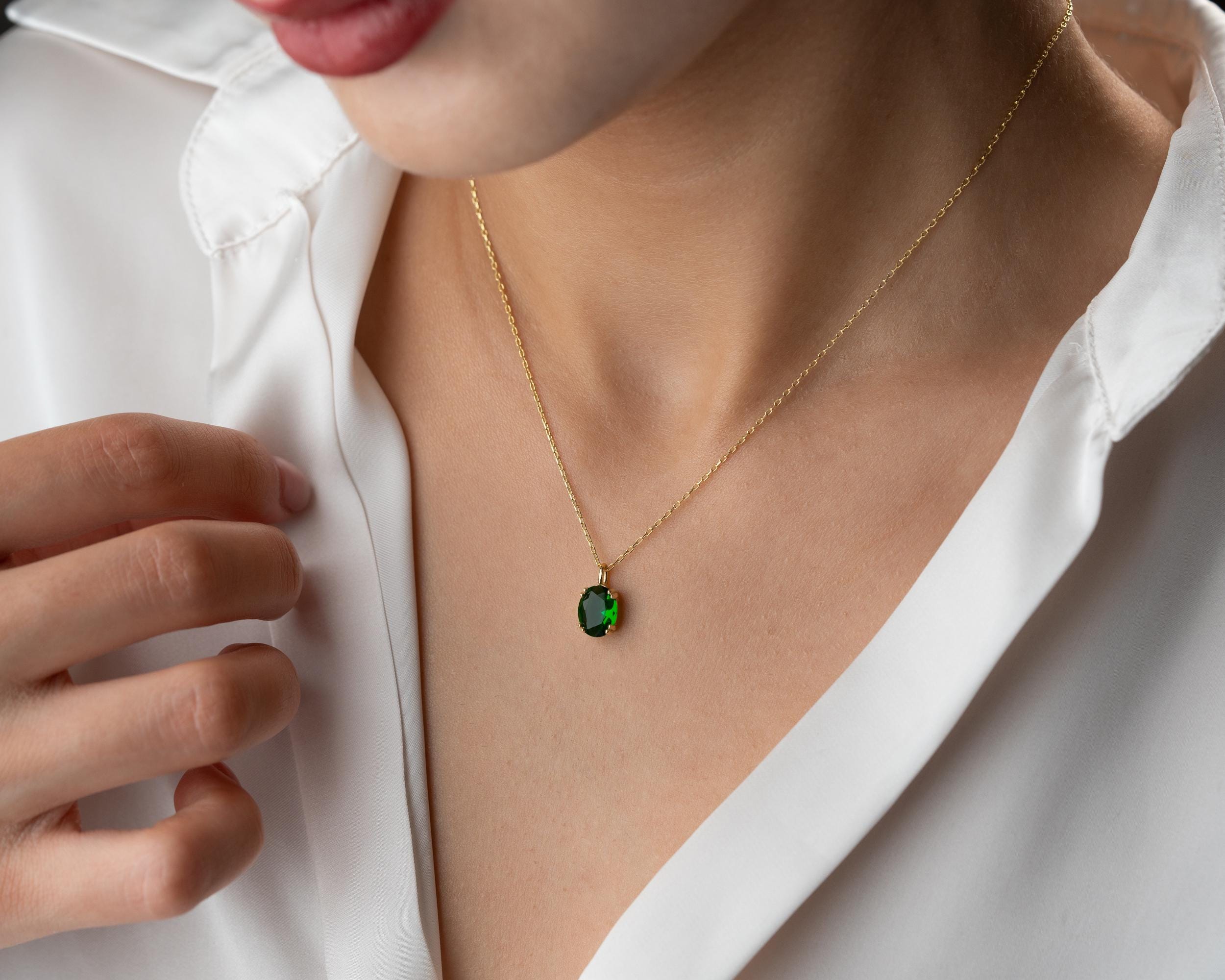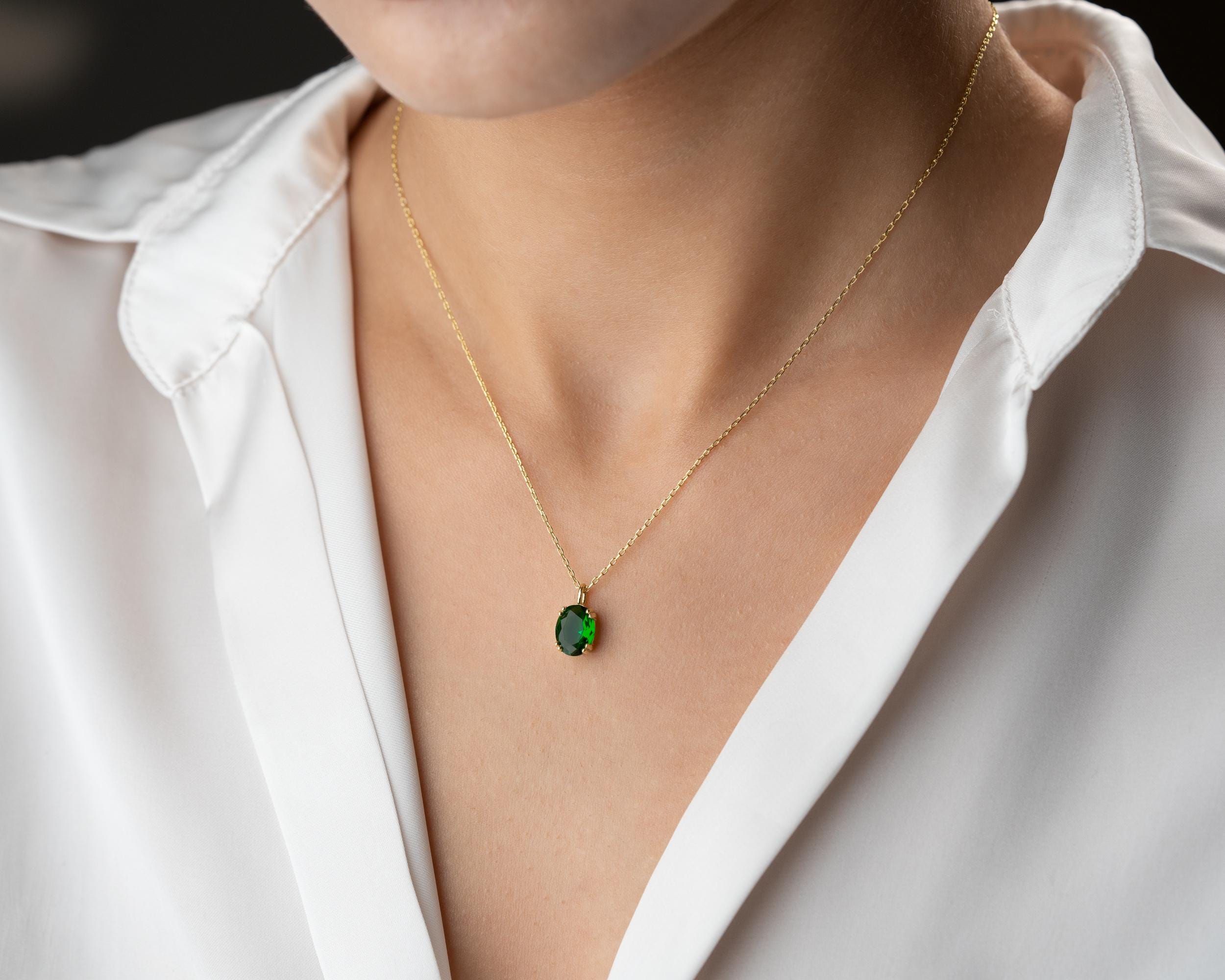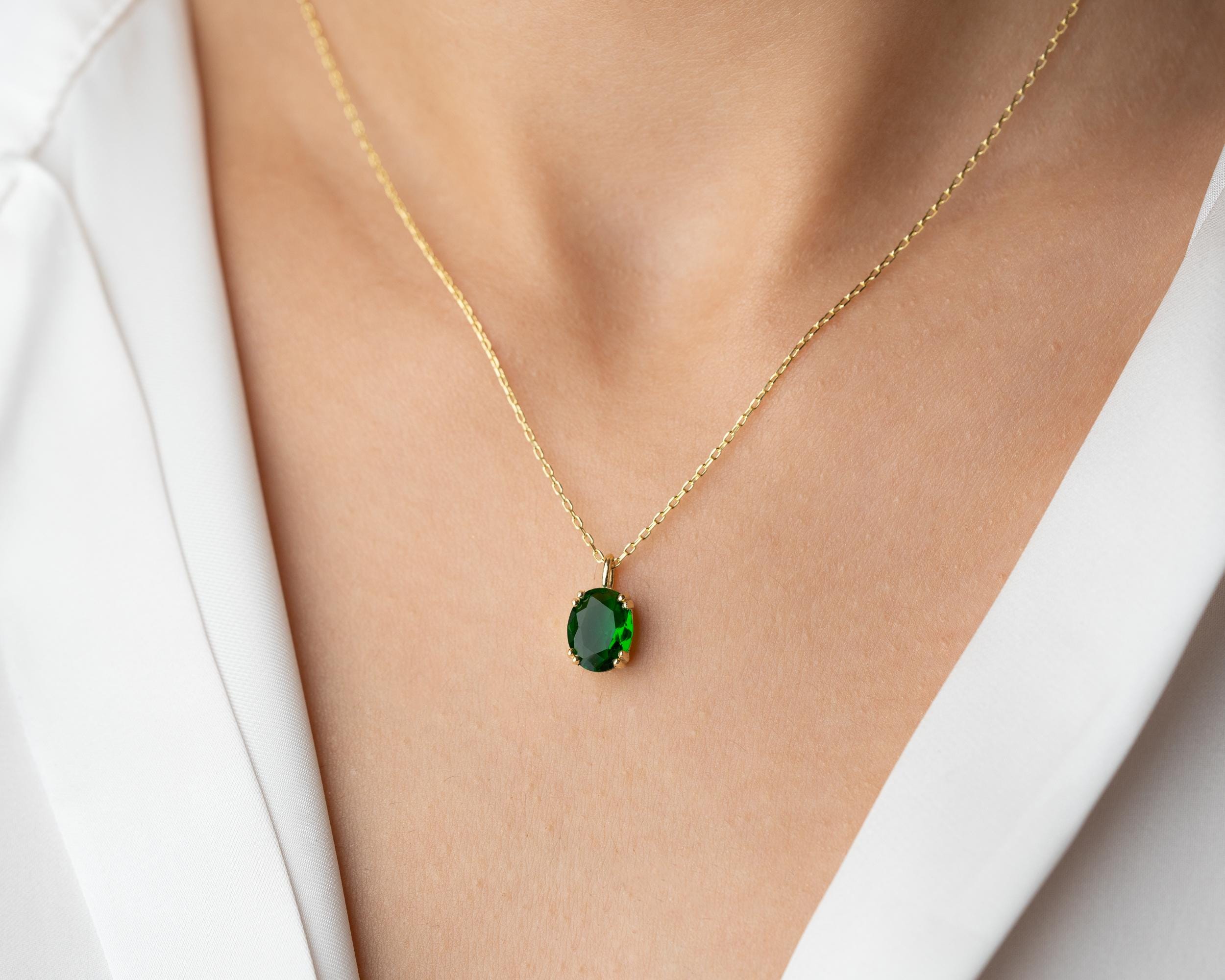 Beautiful — this new oval-cut emerald green pendant necklace fits perfectly into your collection and deserves its own distinctive, luxurious yet elegant.