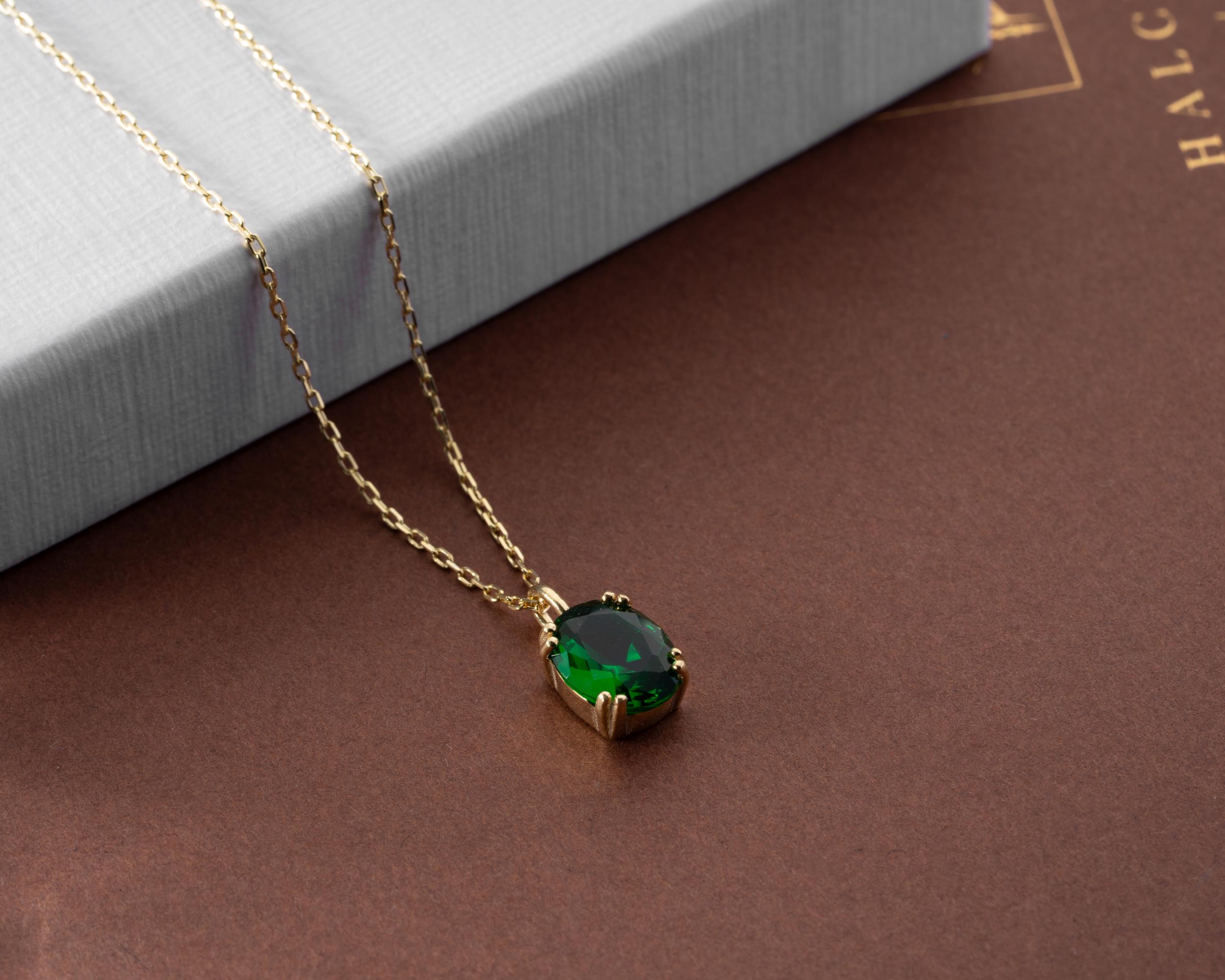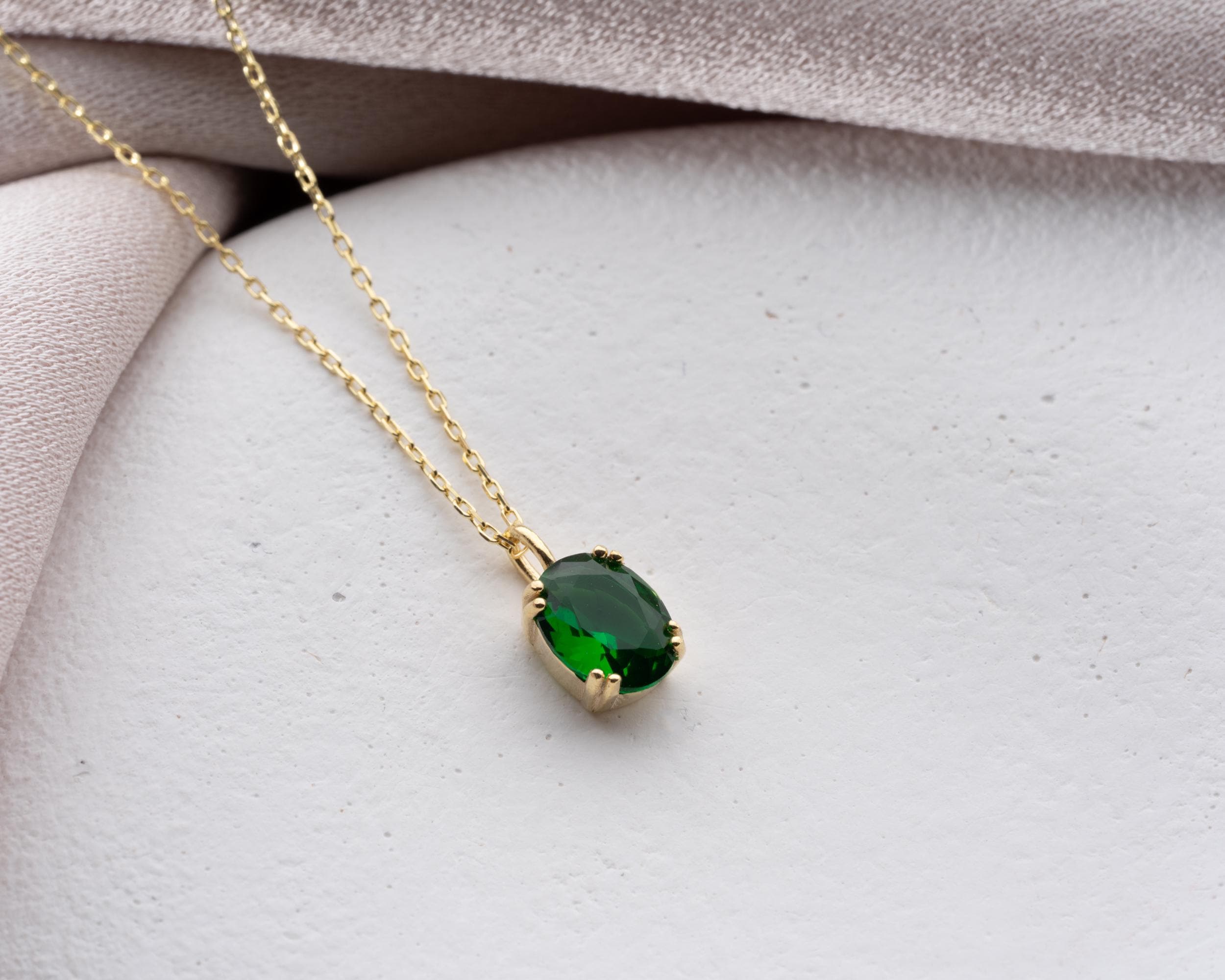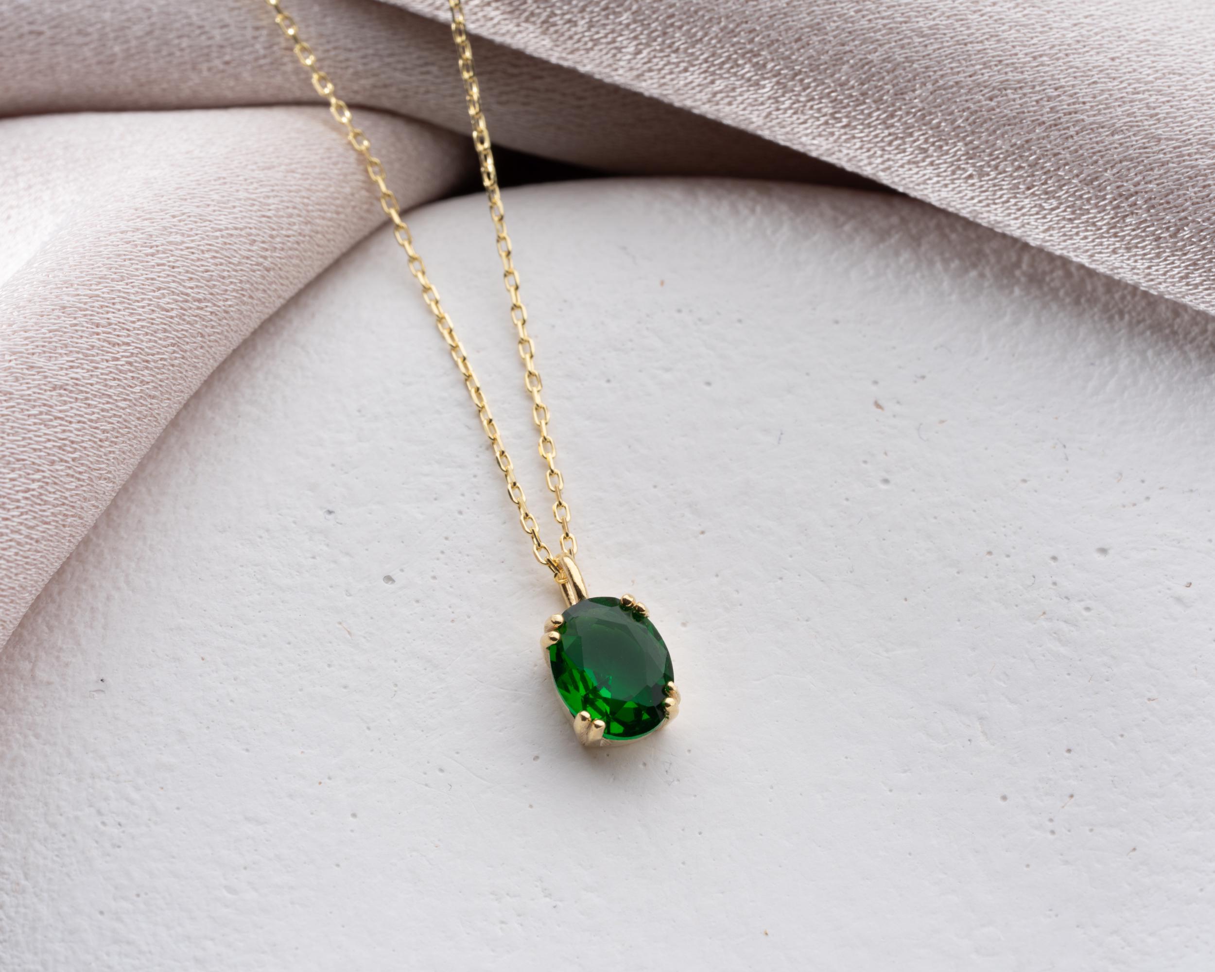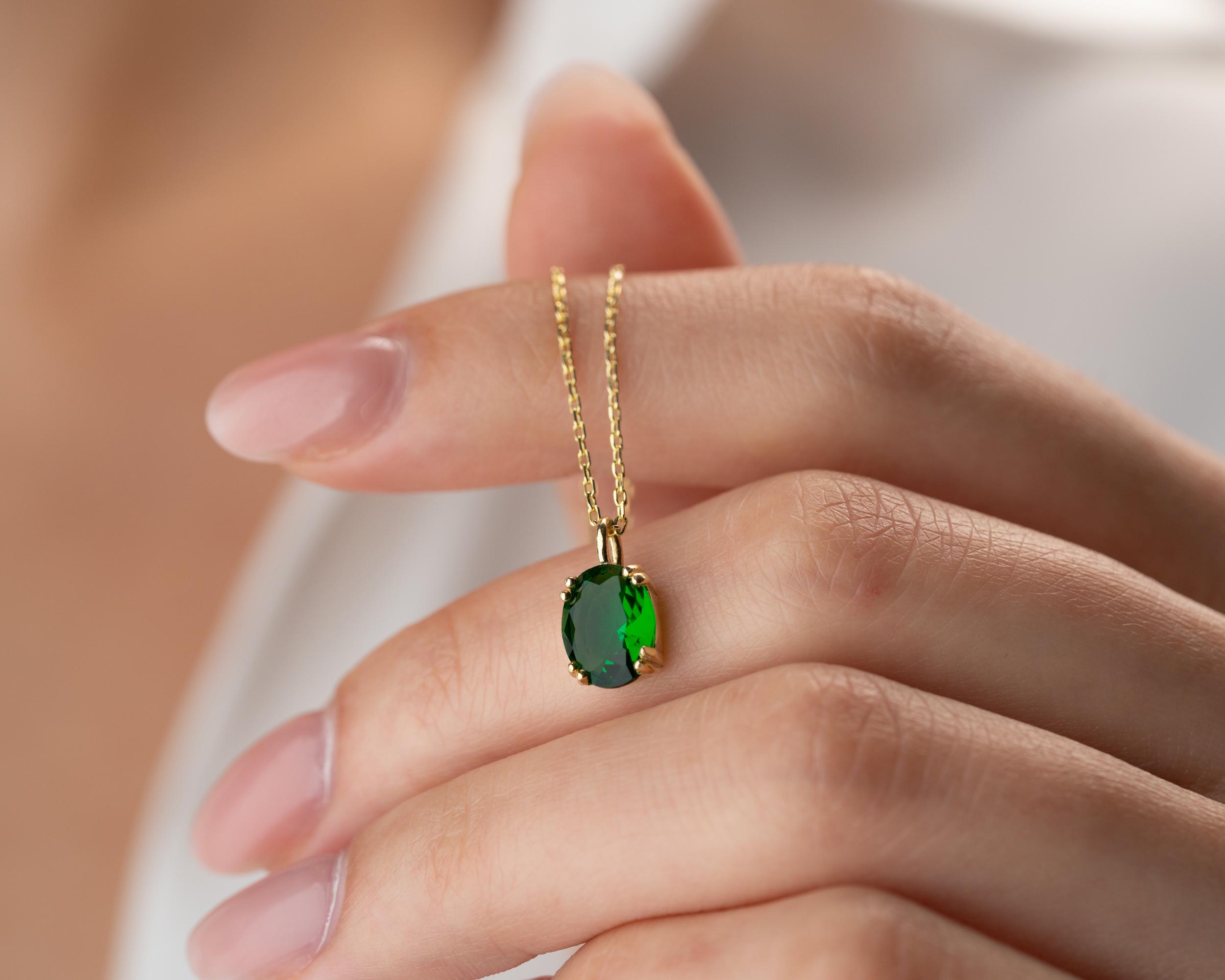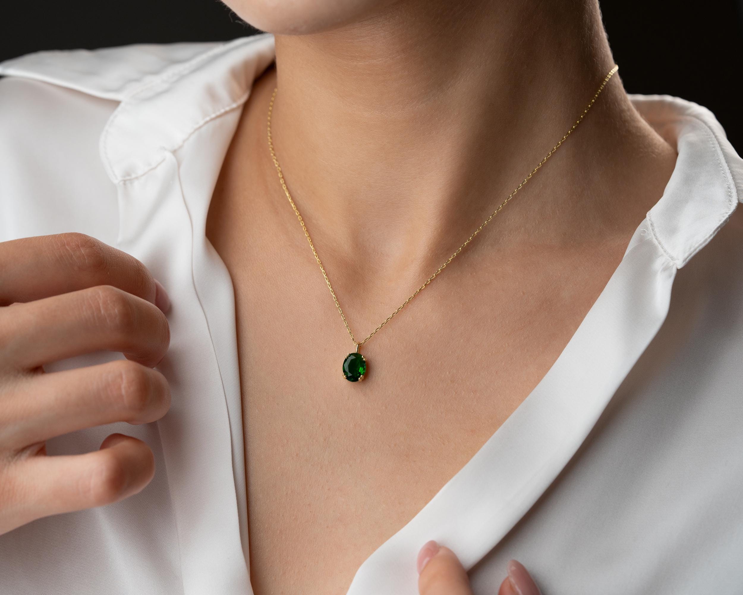 Beautiful — this new oval-cut emerald green pendant necklace fits perfectly into your collection and deserves its own distinctive, luxurious yet elegant.
