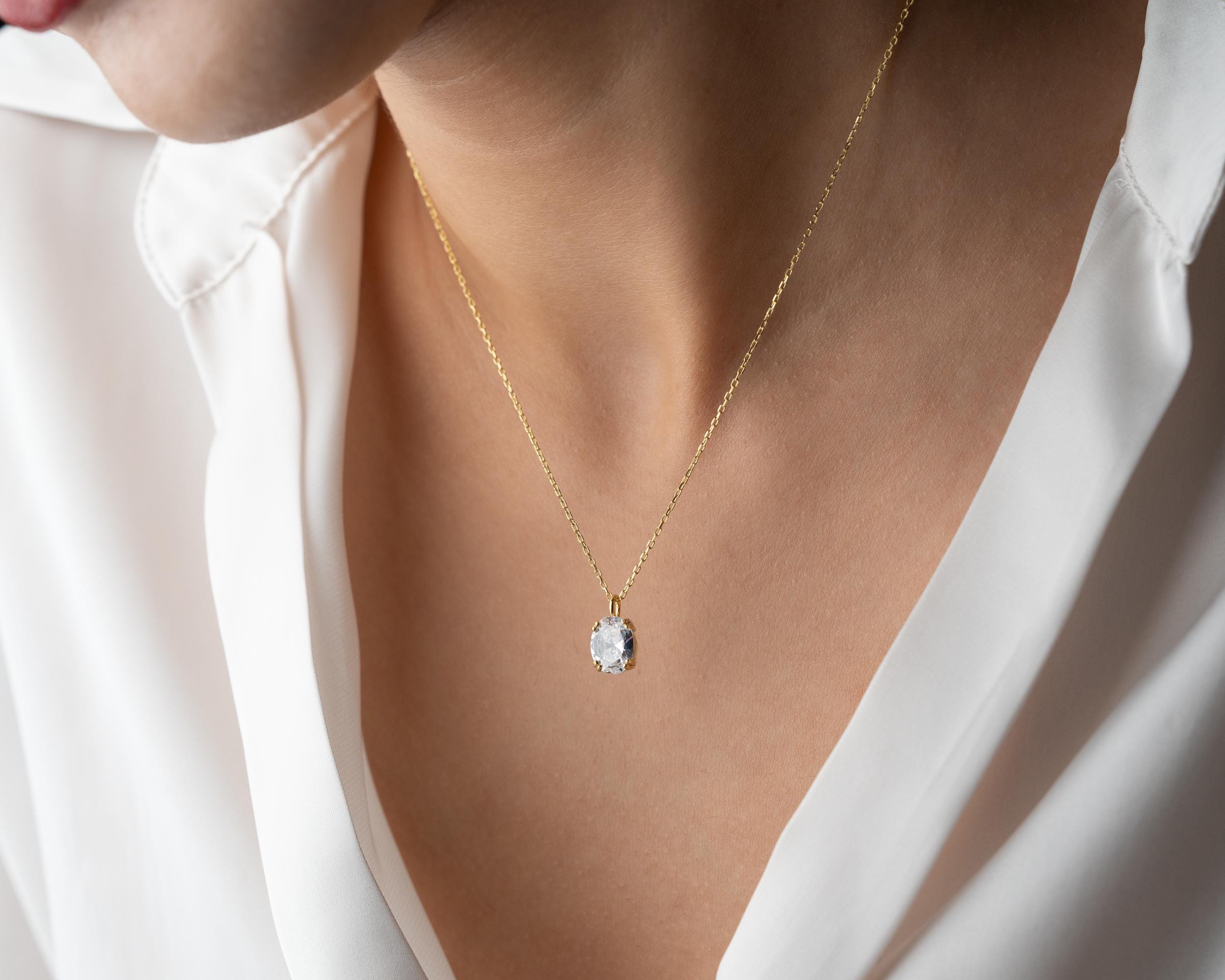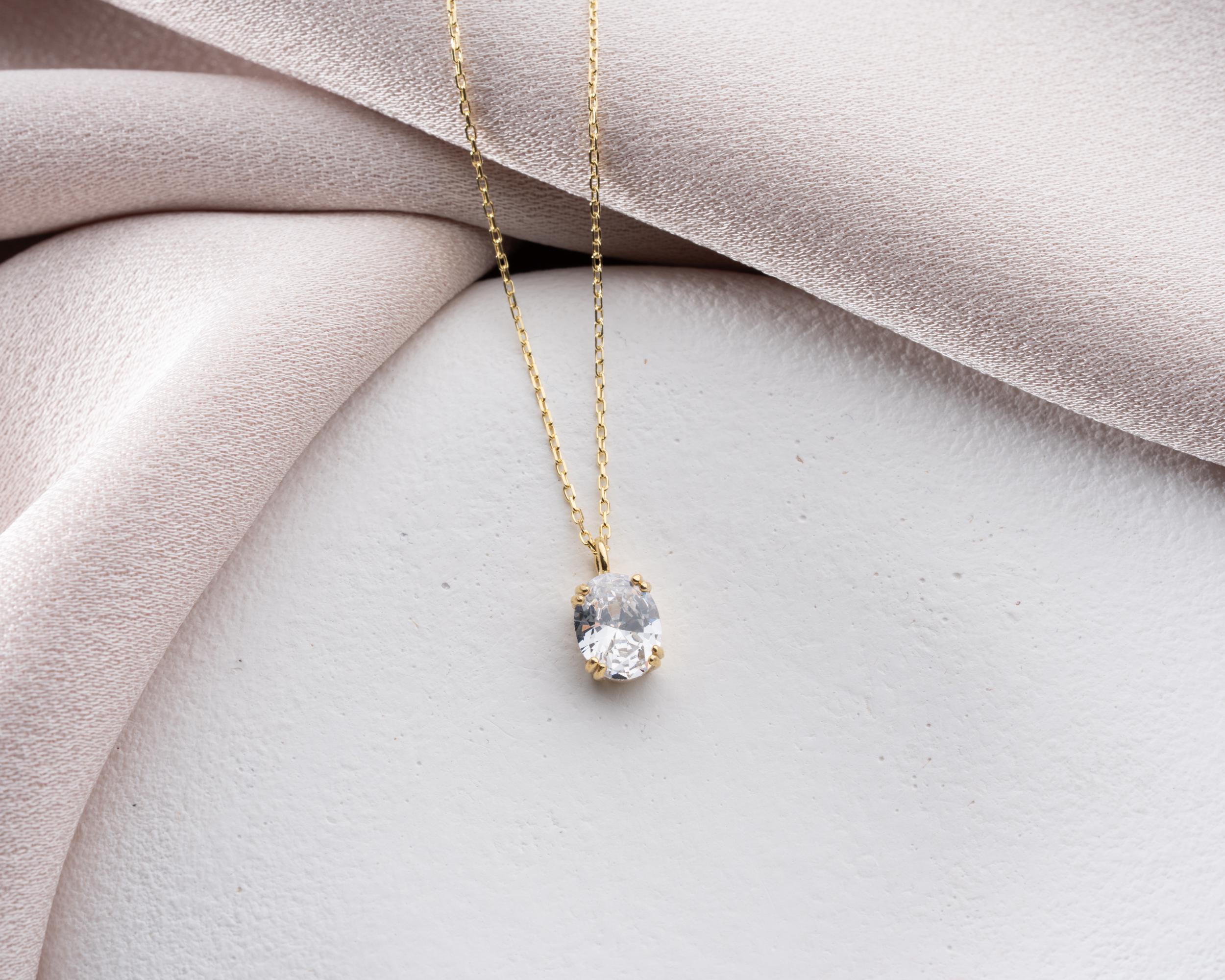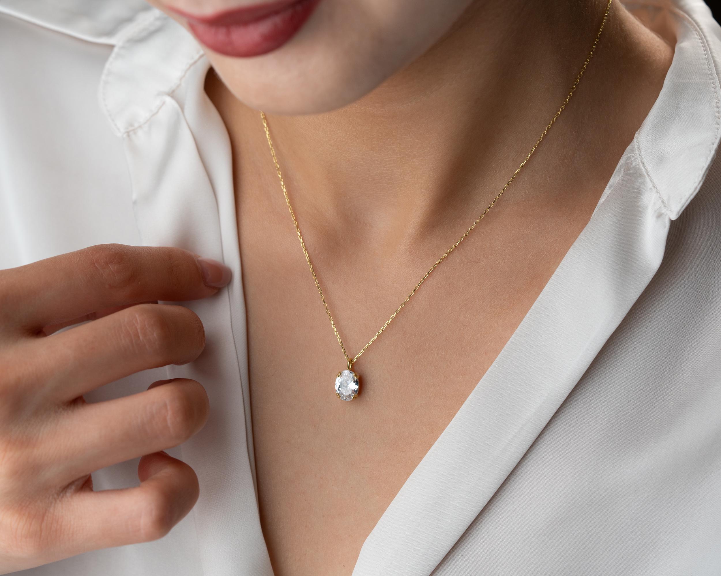 A piece that sparkles with timeless grace — this Oval CZ Diamond Pendant Necklace is the definition of modern elegance. The beautifully faceted oval-cut cubic zirconia diamond radiates a natural brilliance that rivals real diamonds, catching the light from every angle with dazzling clarity.