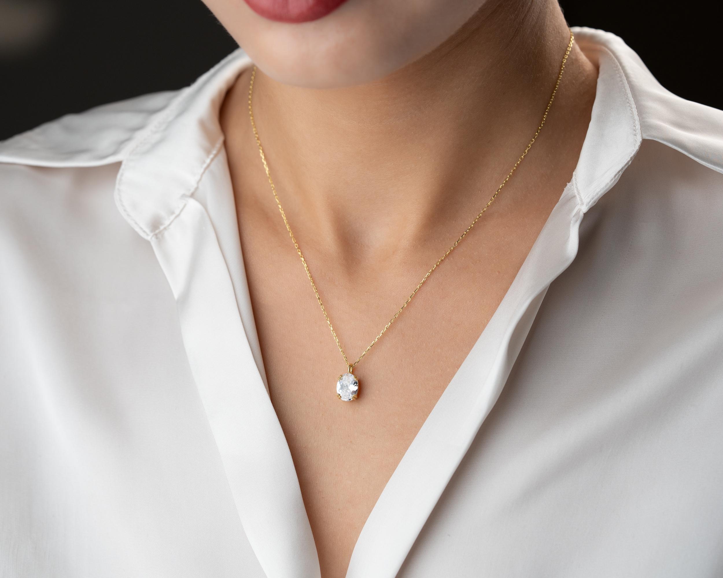Beautiful — this oval-cut clear gemstone pendant completes your fine jewelry lineup perfectly.