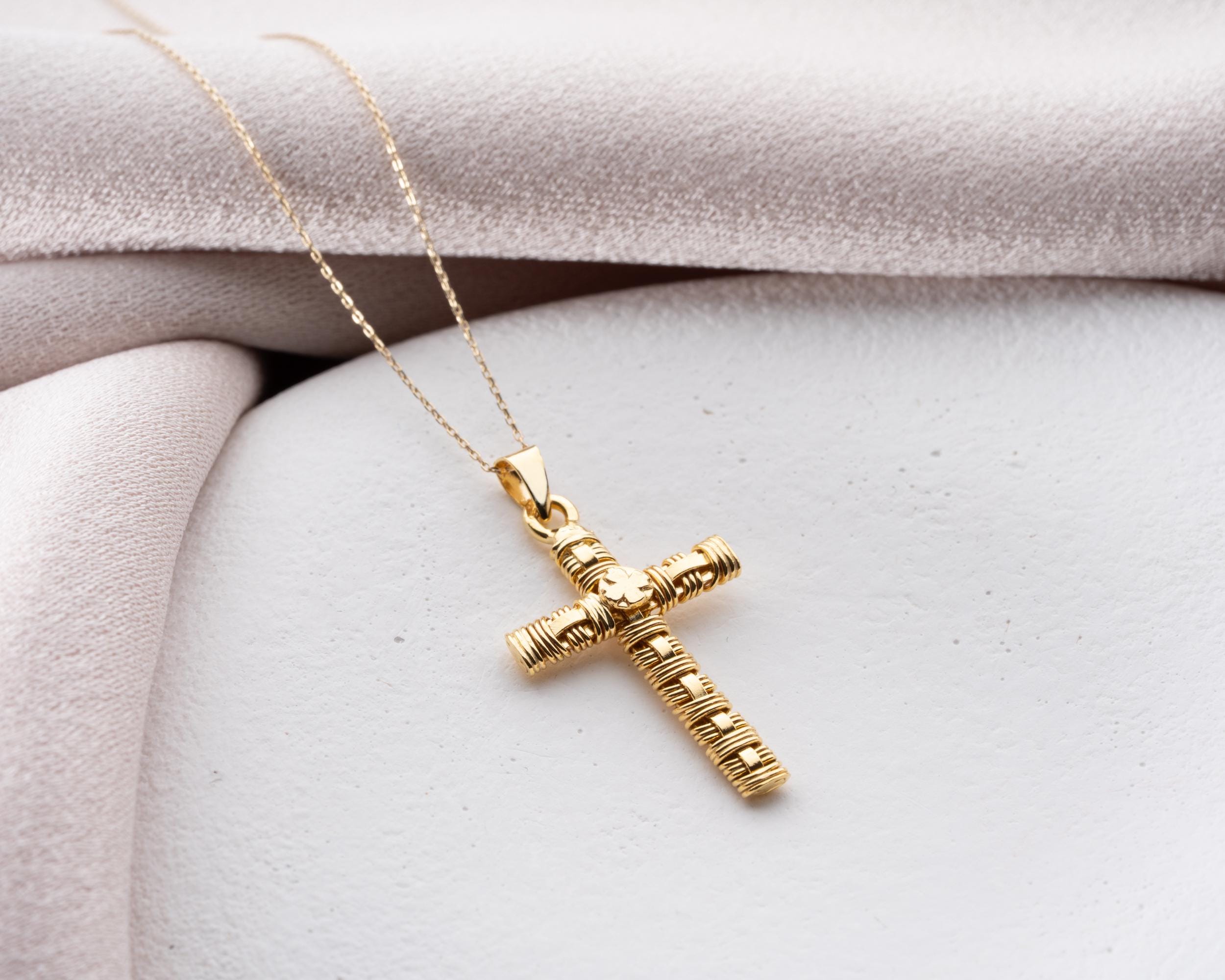 Elegant yet meaningful, this pendant is ideal for both men and women, making it a thoughtful gift for baptisms, confirmations, anniversaries, or milestones of faith. Whether given as a gesture of love or worn as a personal reminder of devotion, this solid gold cross necklace is an heirloom piece that will be cherished for generations.