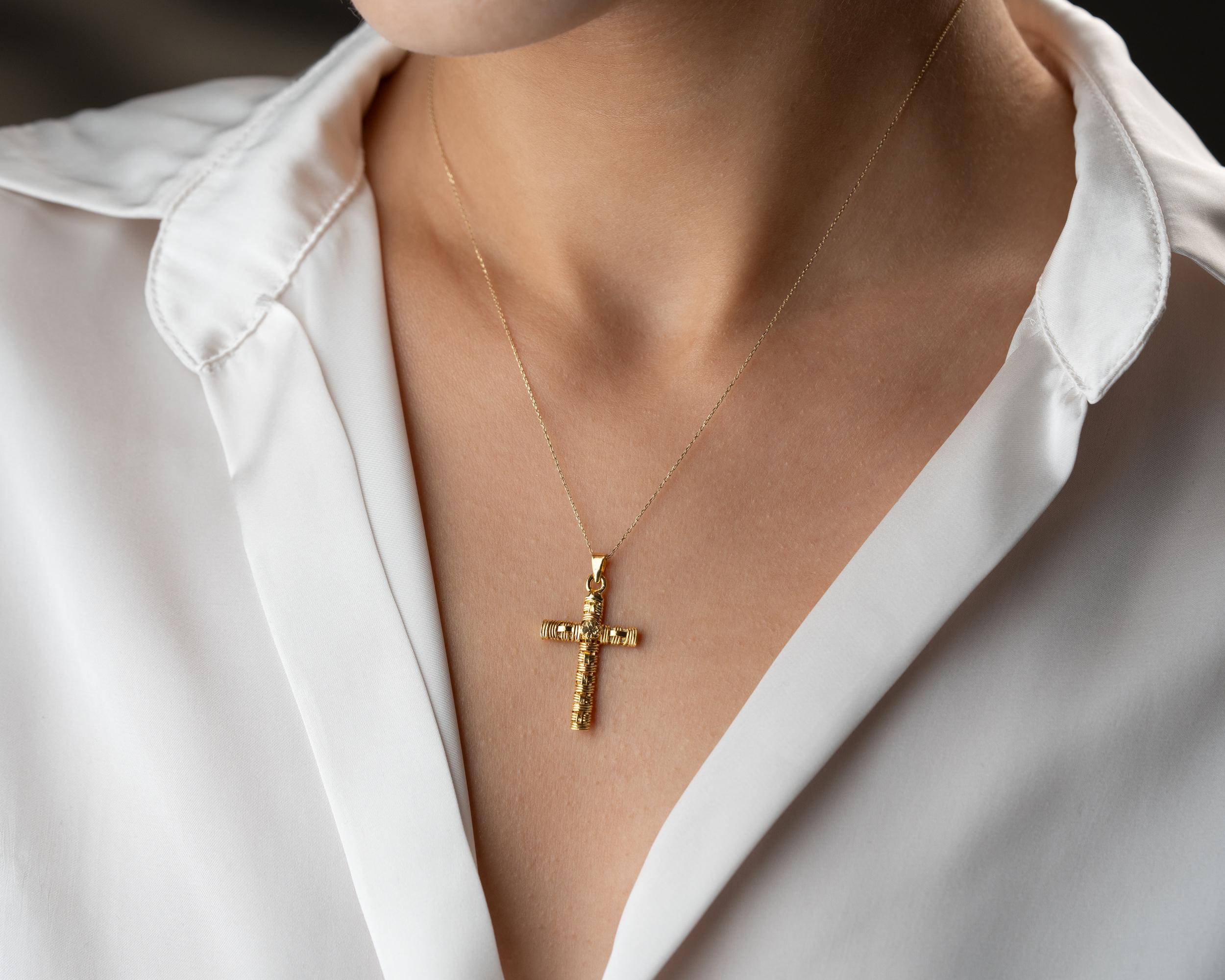 This 14K Solid Gold Cross Pendant Necklace is a fusion of faith, luxury, and artistry. The detailed craftsmanship and textured design give it a distinctive character, while the solid gold construction ensures it remains a lasting keepsake for decades to come.
