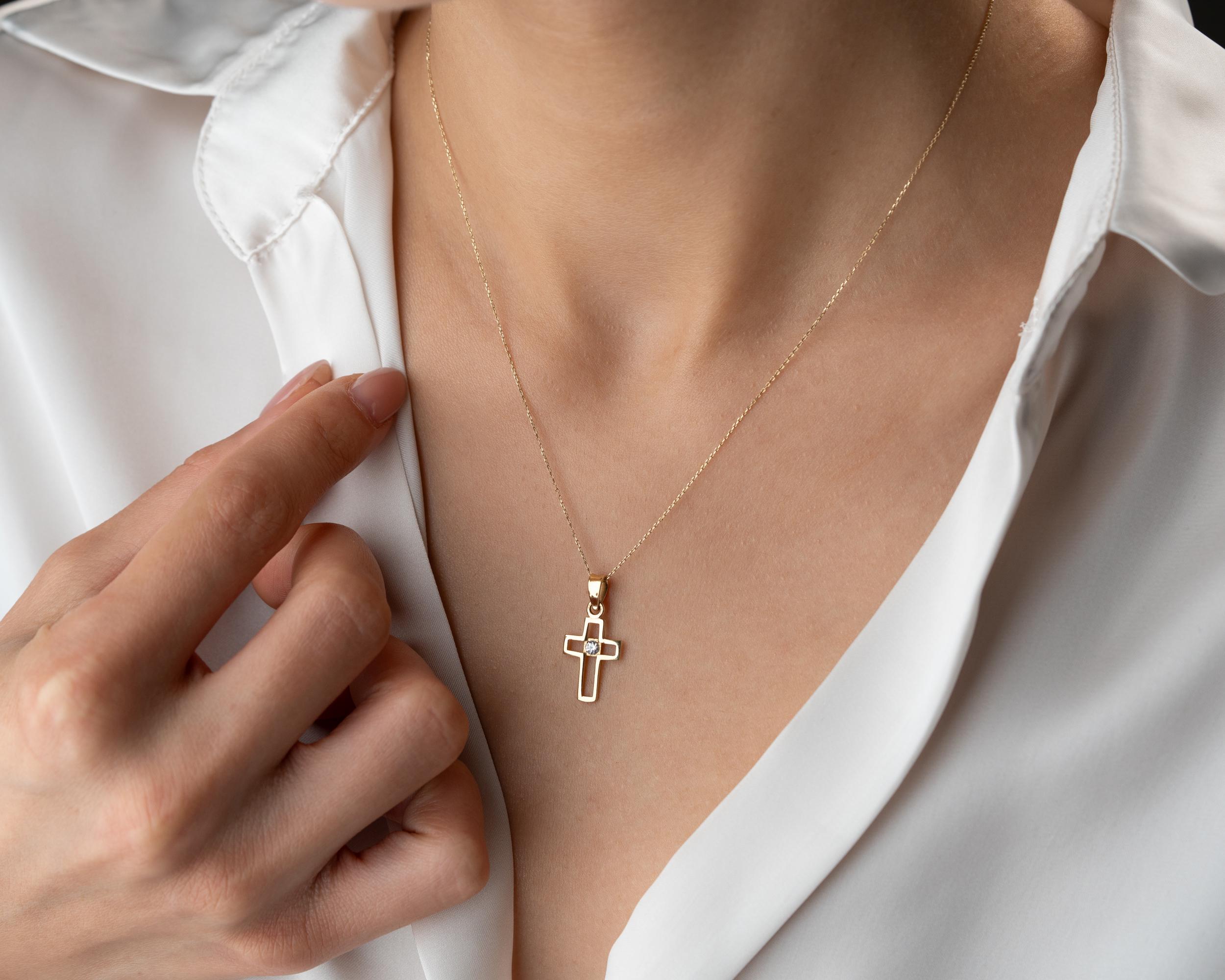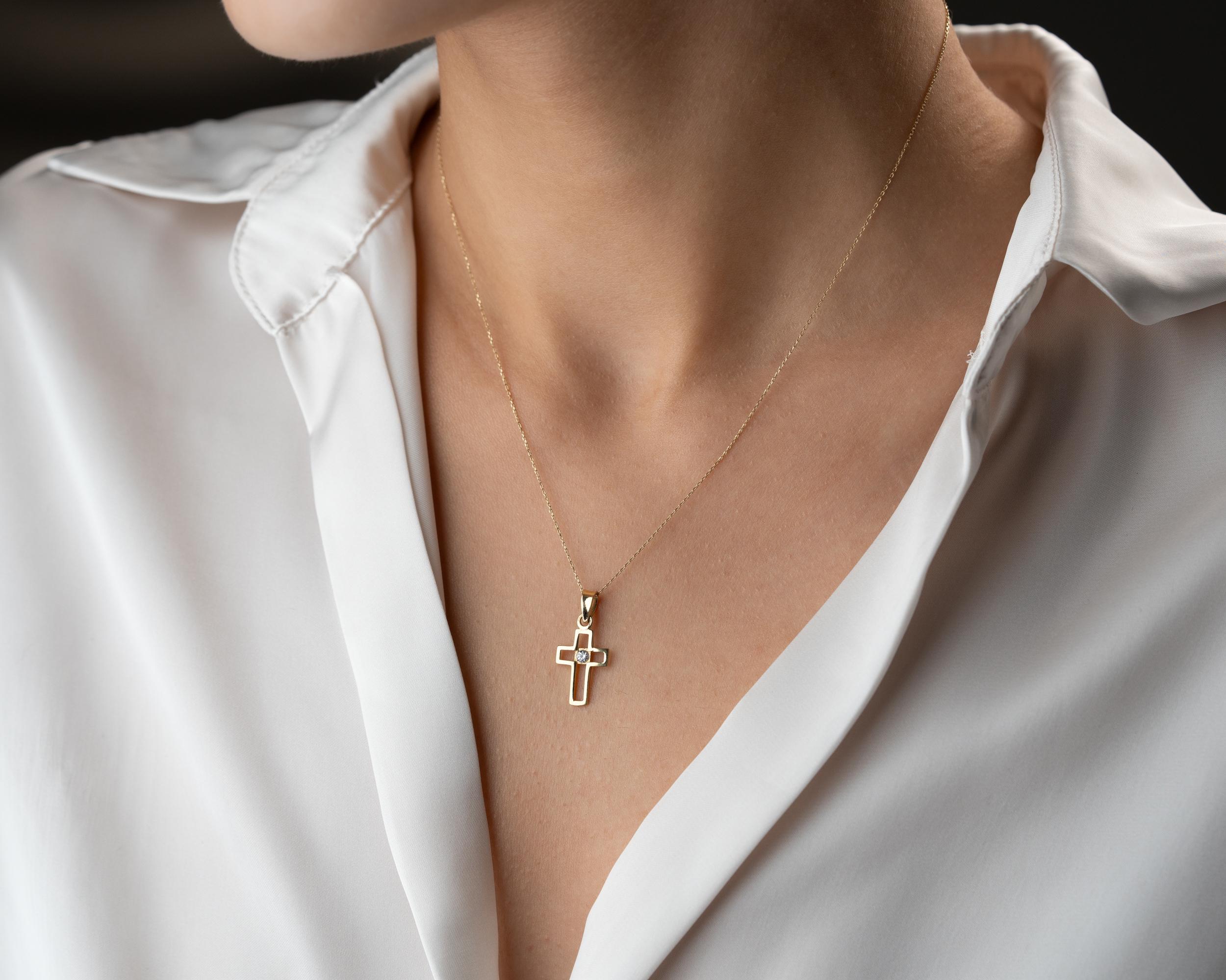 This elegant 14K gold cross necklace makes a meaningful gift for loved ones.