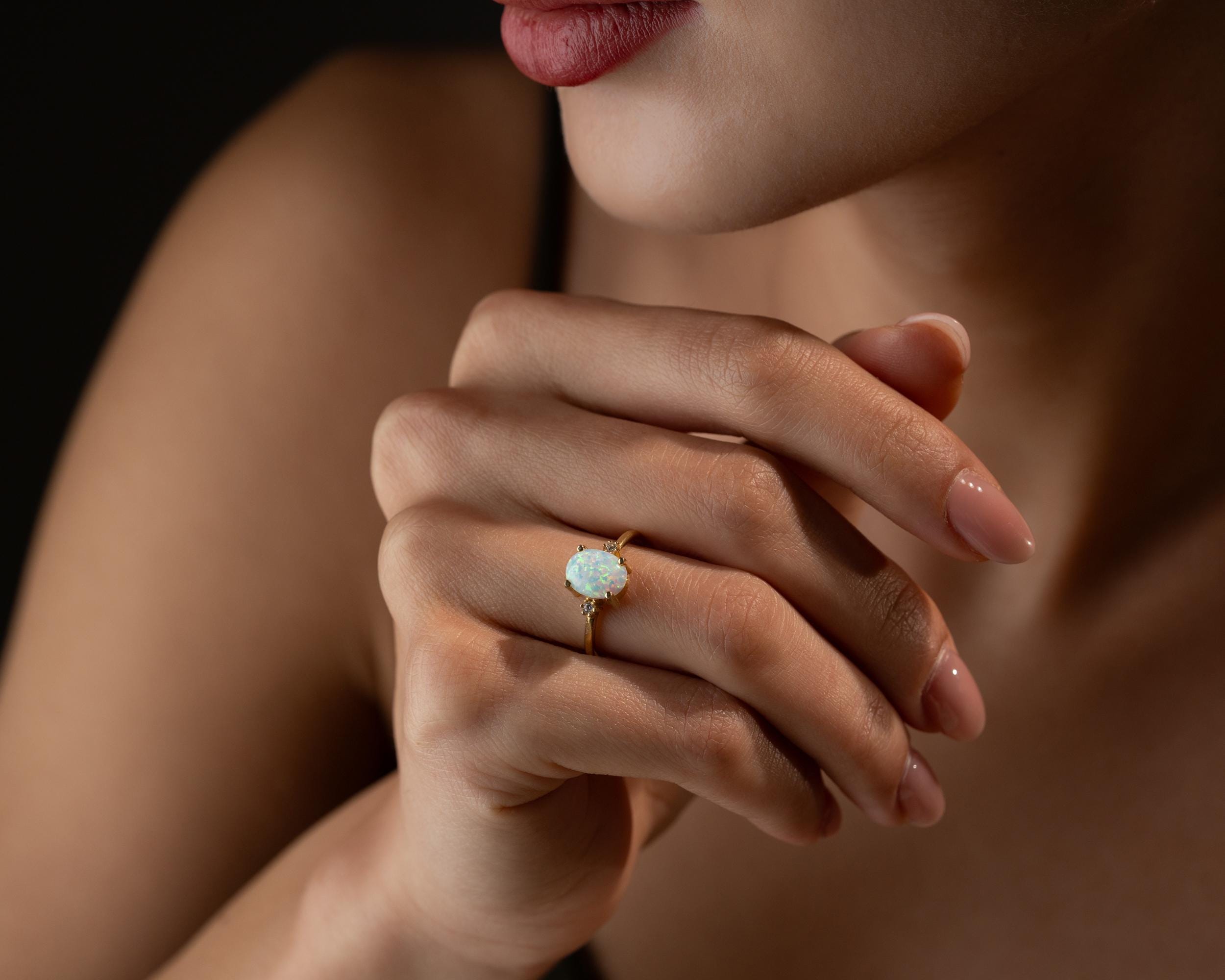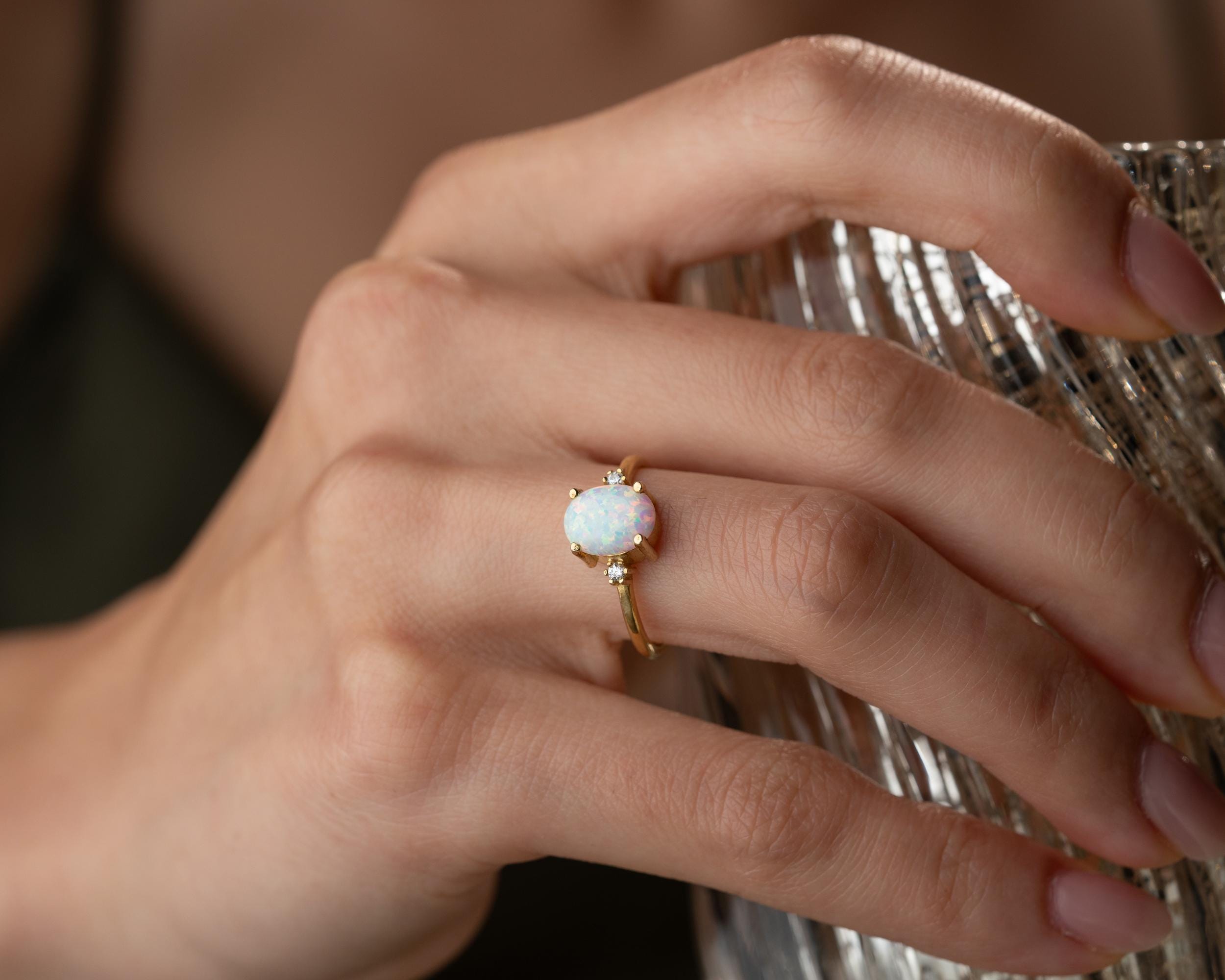 Experience the captivating magic of opal — a gemstone like no other. This handcrafted gold vermeil ring features an oval-cut opal that radiates a mesmerizing play of color, revealing flashes of blue, pink, green, and golden fire as it moves in the light. Known for its mystical beauty and luminous depth, opal has long been cherished as a symbol of hope, creativity, and emotional balance.
