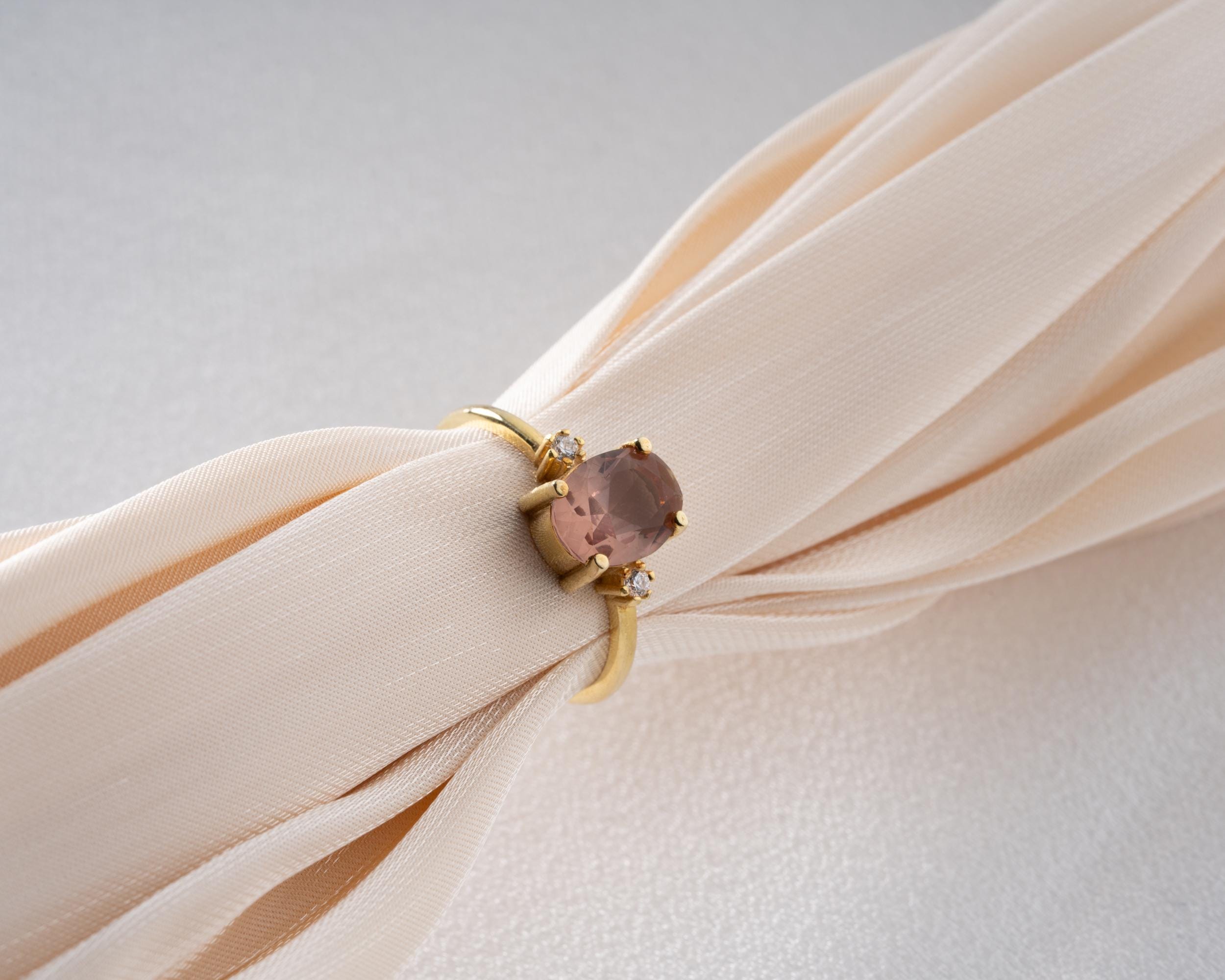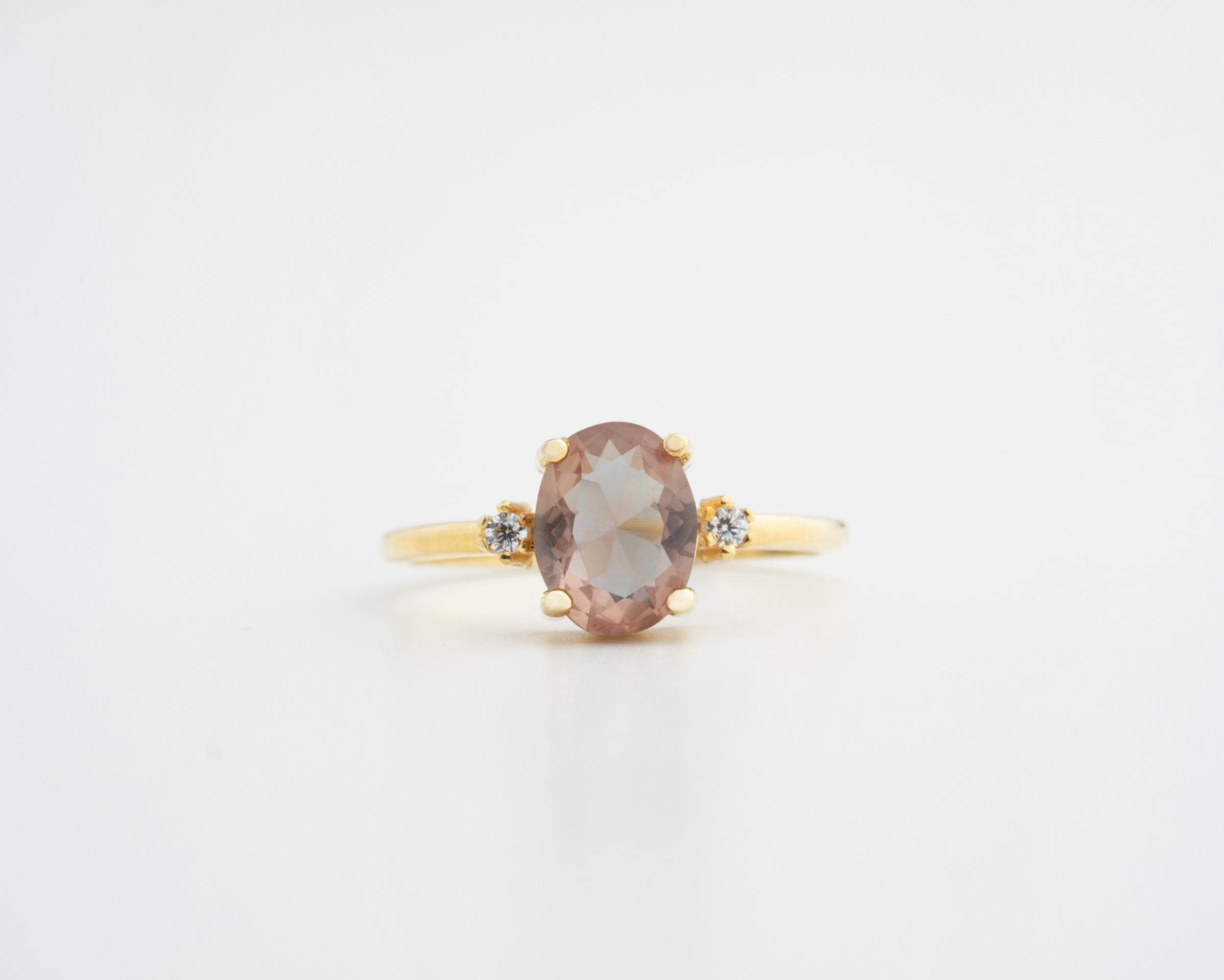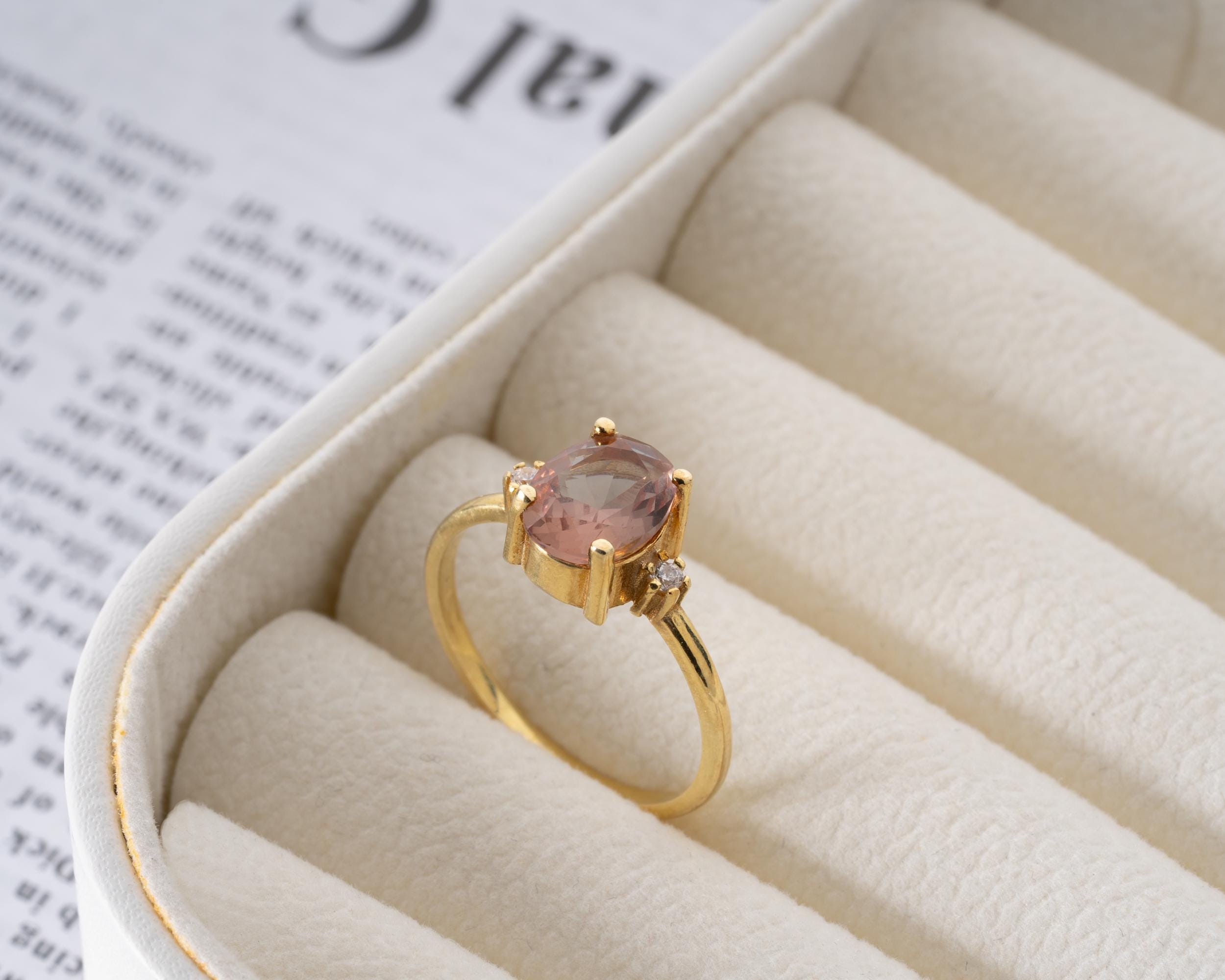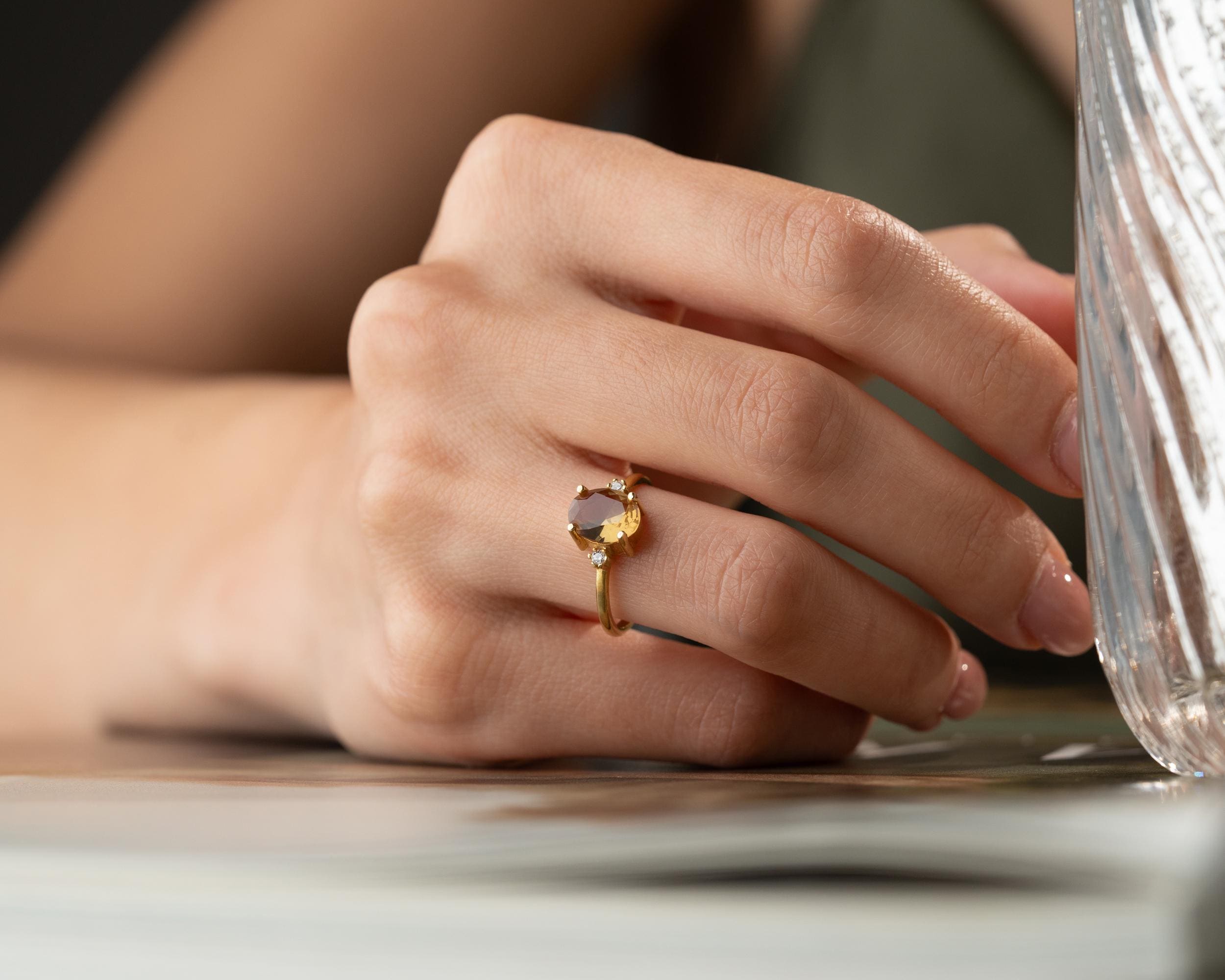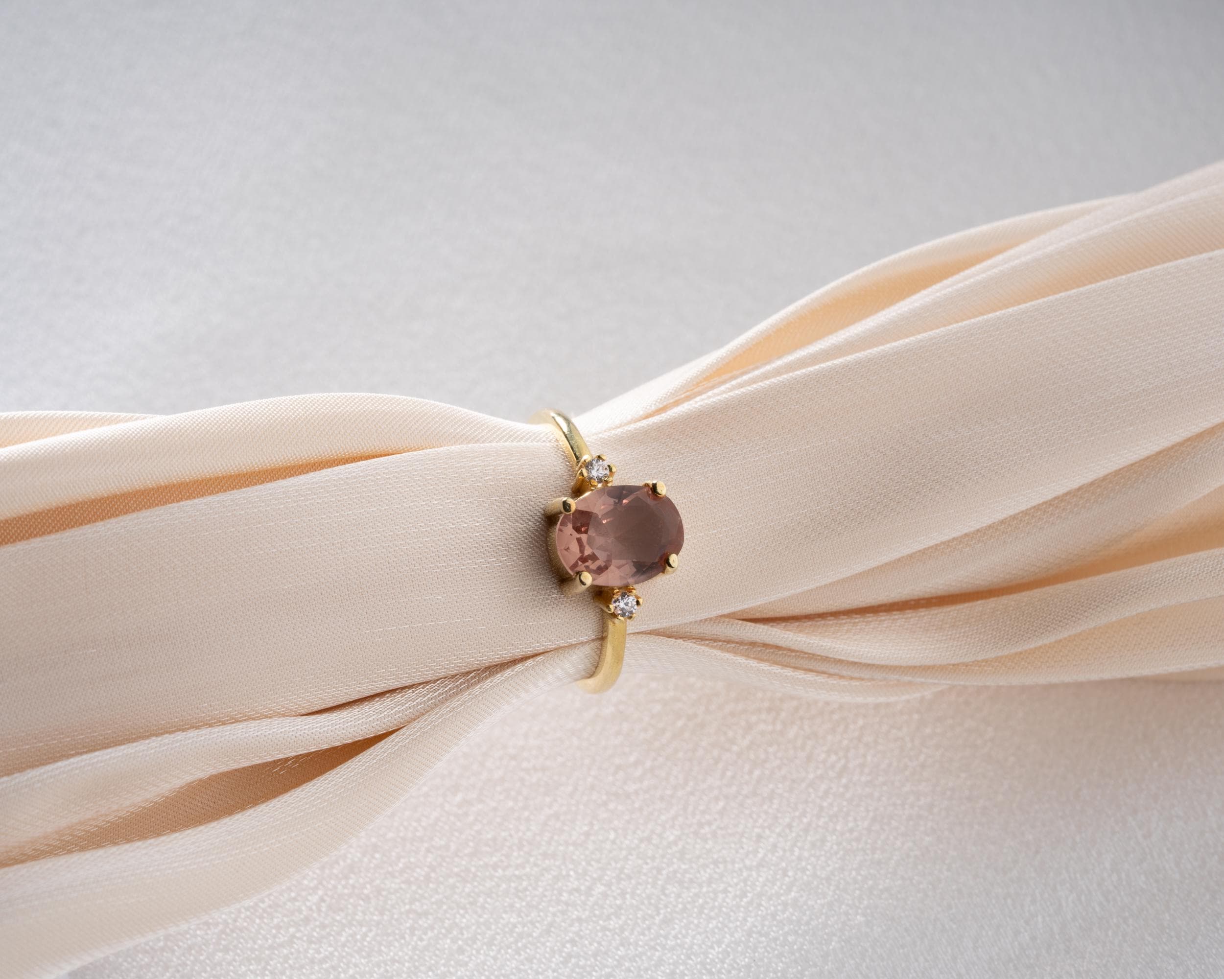Elegant, enchanting, and endlessly unique — this 14K gold vermeil ring features a genuine oval-cut Zultanite that changes color beautifully under different light. In daylight, it glows with golden-green and champagne tones; under indoor lighting, it transforms into soft rose and pinkish hues. Two sparkling white cubic zirconia or simulated diamonds accent the center stone, adding extra brilliance and balance.