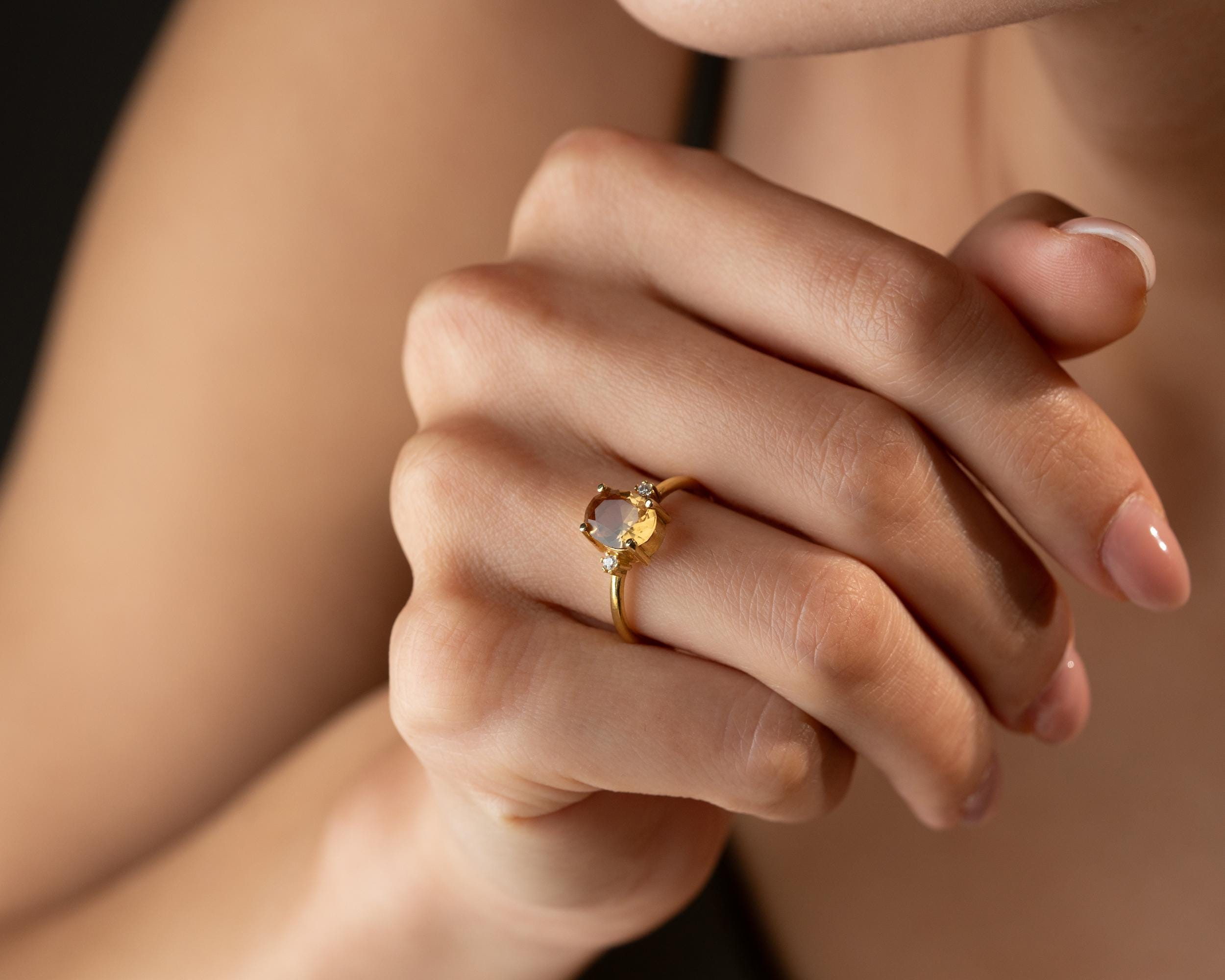 To preserve your ring’s beauty, avoid contact with water, perfume, and chemicals. Store in a dry jewelry box or pouch when not worn.