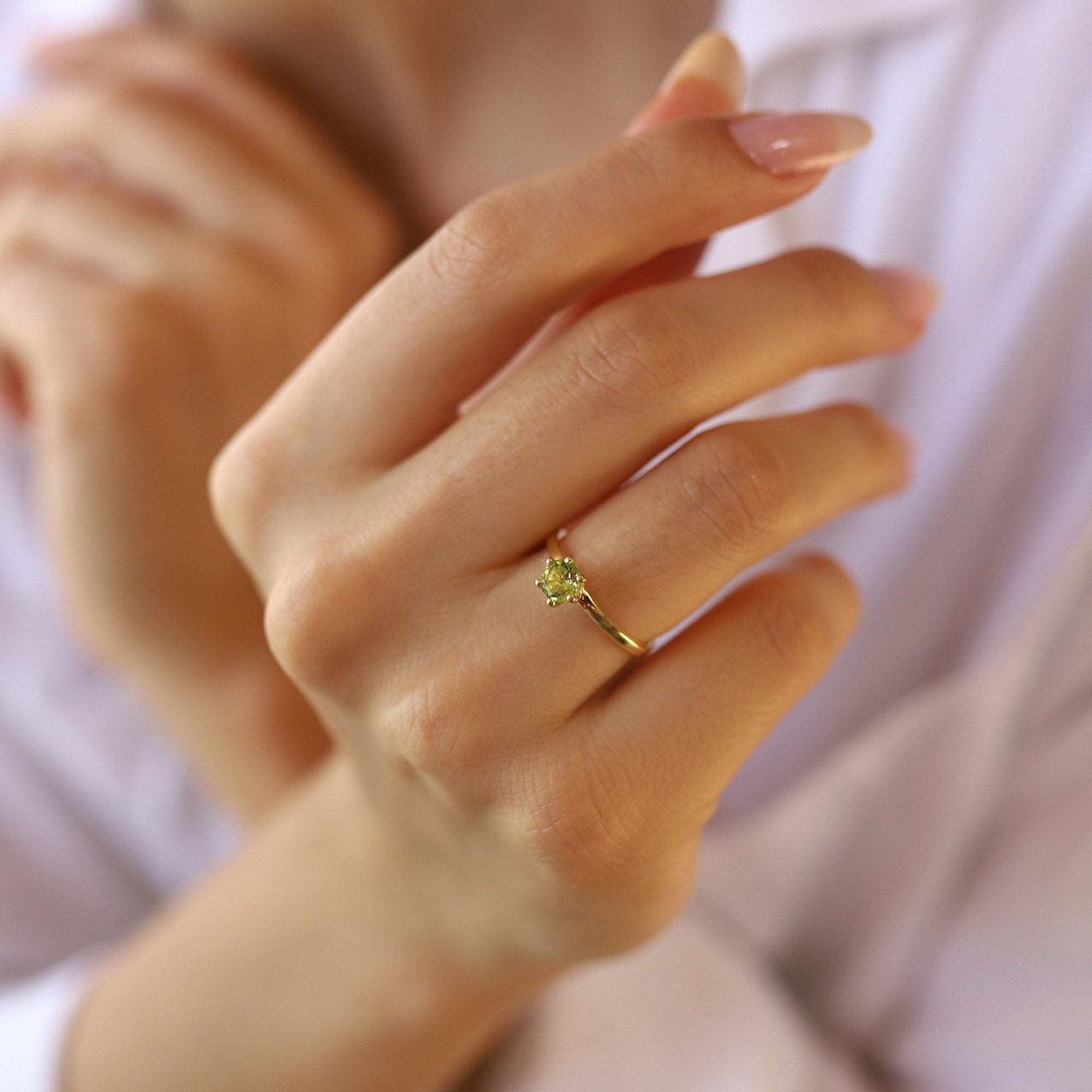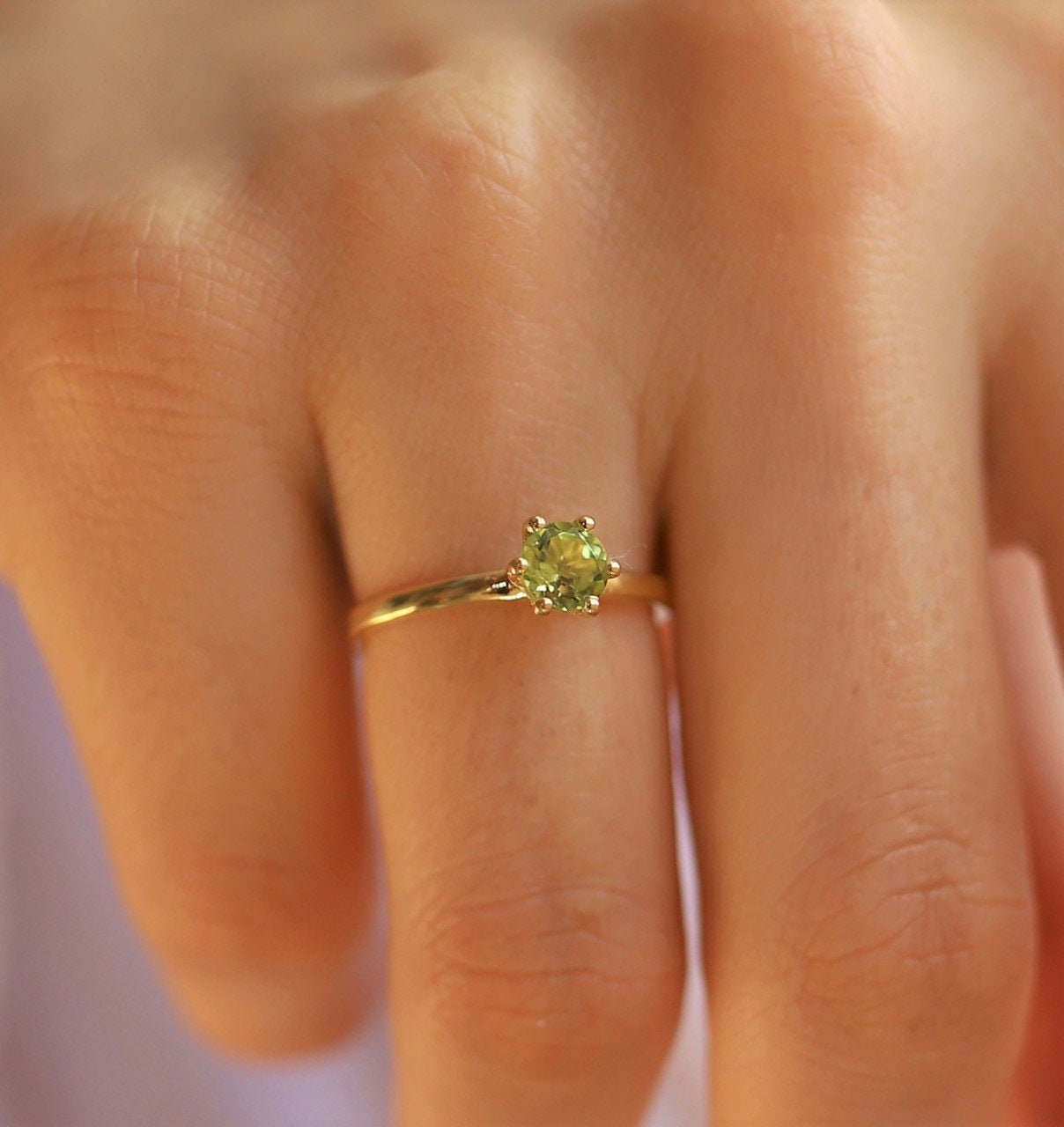 The perfect minimal birthstone ring has arrived! A round cut gemstone of your choosing is prong set on a slim band.