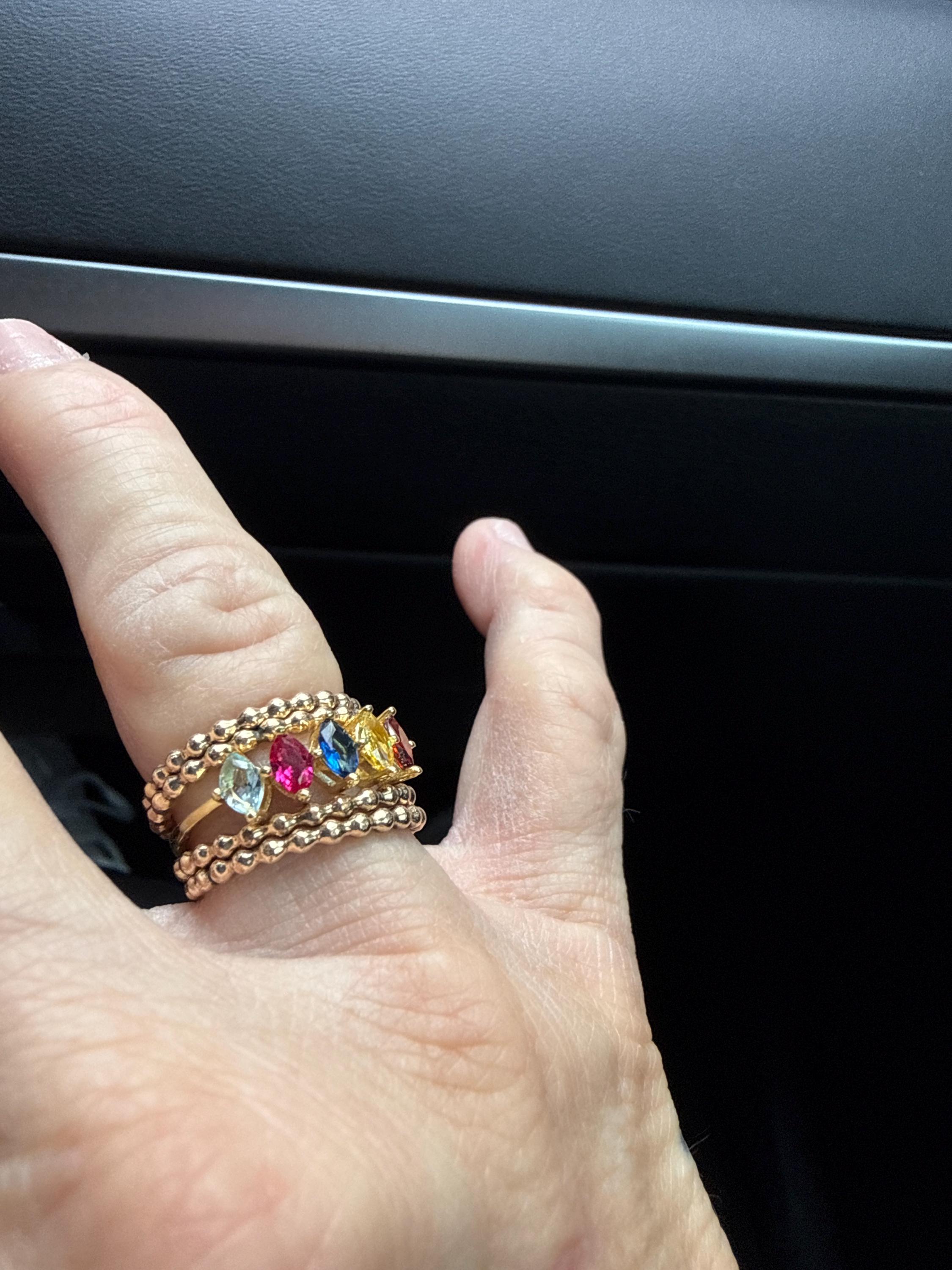 Gold Plated Multi Marquise Birthstone Ring • Rainbow Band • Dainty Colorful Stackable Ring • Pink Blue Yellow Stones